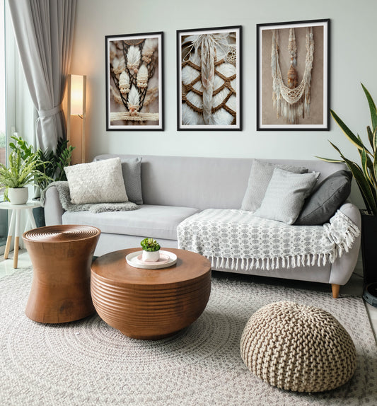 Graphic cult macrame wall hanging boho decorative poster set